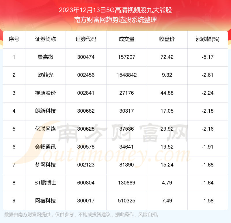 以上就是网络对股票期货配资 【盘后整理】5G高清视频股2023年12月13日九大熊股名单的解读(https://www.youge168.com/news-pzhq/52020.html)希望可以帮助您。