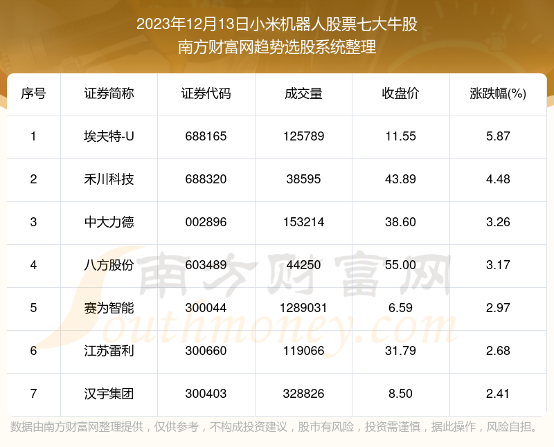 以上就是网络对配资是什么意思 2023年12月13日板块复盘:小米机器人股票七大牛股名单的解读(https://www.youge168.com/news-pzhq/52036.html)希望可以帮助您。
