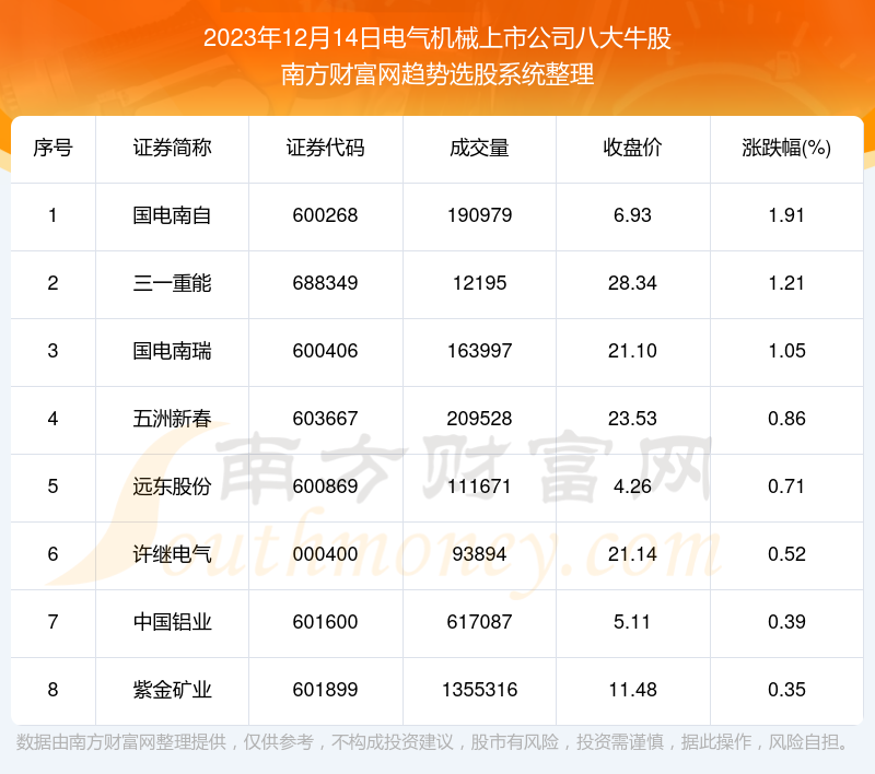 以上就是网络对最好的配资公司 【盘后整理】电气机械上市公司2023年12月14日八大牛股(附股)的解读(https://www.youge168.com/news-pzhq/52143.html)希望可以帮助您。