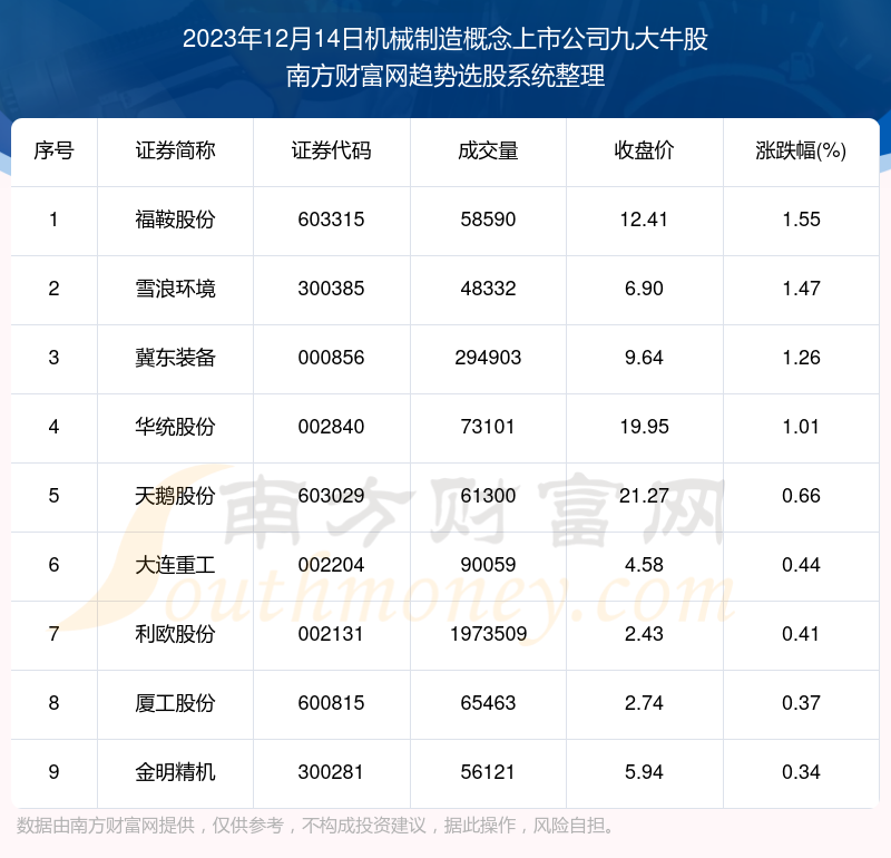 以上就是网络对股票在线配资 【数据复盘】机械制造概念上市公司2023年12月14日九大牛股名单的解读(https://www.youge168.com/news-pzhq/52185.html)希望可以帮助您。