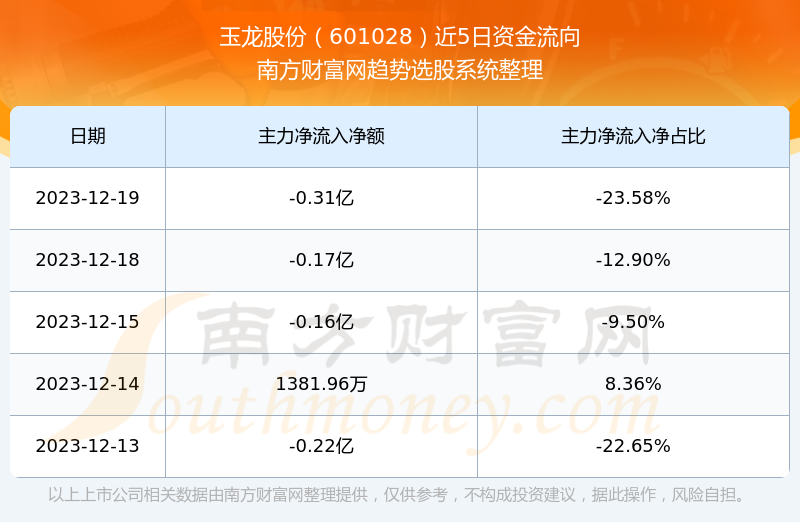 二、玉龙股份(601028)近期盘面、资金面情况
