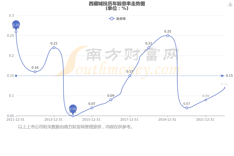 西藏城投最新一次公布的分红方案为10派0.16元。本次权益分派股权登记日为2023年6月12日,除权除息日为2023年6月13日,派息日为2023年6月13日。