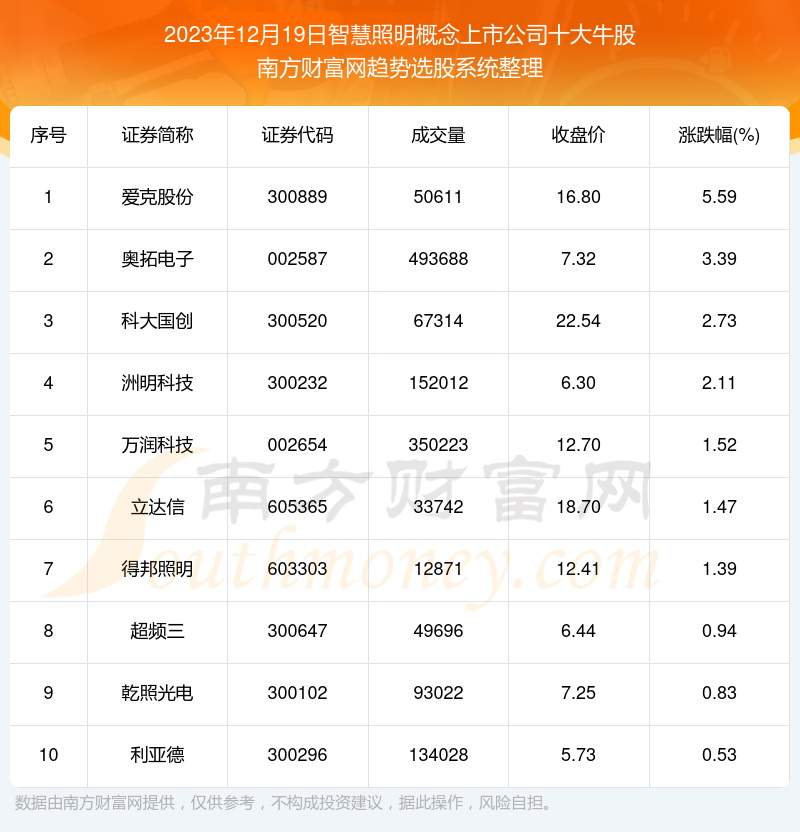 以上就是网络对在线炒股配资 数据解盘|2023年12月19日智慧照明概念上市公司十大牛股一览的解读(https://www.youge168.com/news-pzhq/52340.html)希望可以帮助您。