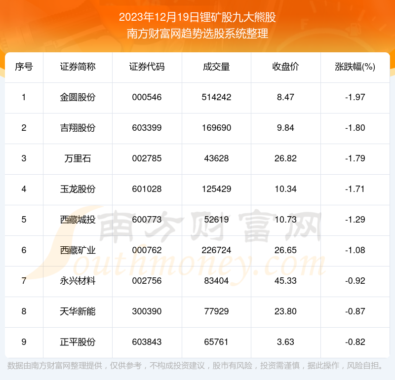 以上就是网络对证券配资公司 2023年12月19日板块数据:锂矿股九大熊股的解读(https://www.youge168.com/news-pzhq/52348.html)希望可以帮助您。