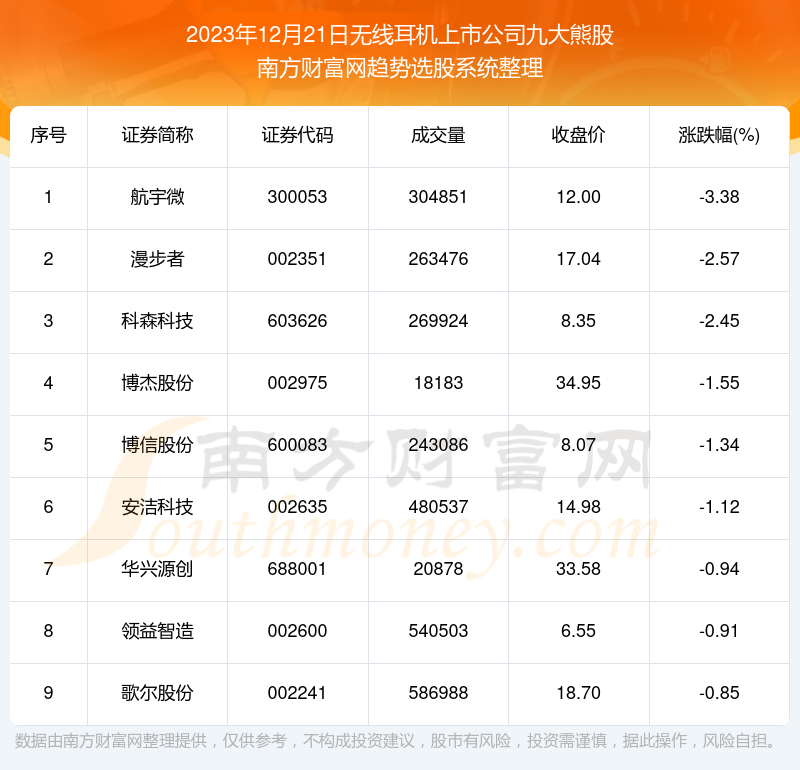 以上就是网络对外汇配资 数据解盘|2023年12月21日无线耳机上市公司九大熊股的解读(https://www.youge168.com/news-pzhq/52511.html)希望可以帮助您。