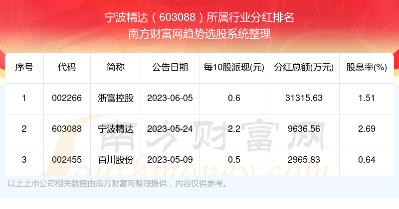 二、宁波精达603088行业分红排名