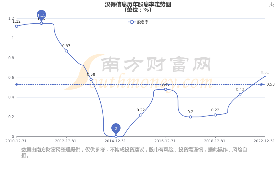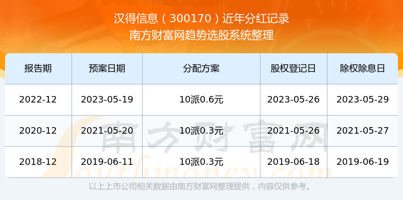 汉得信息最新一次公布的分红方案:10派0.6元。