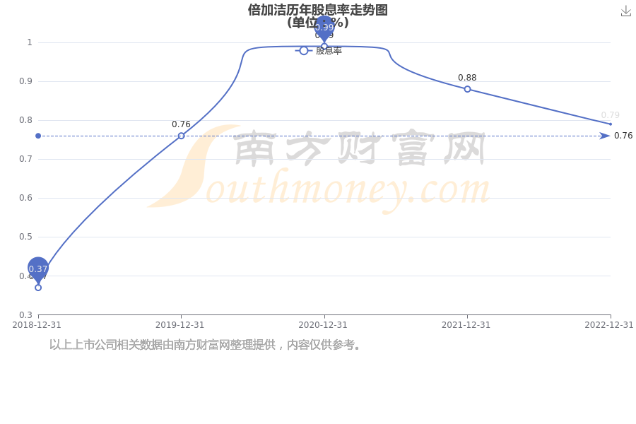 倍加洁最新一次公布的分红方案:10派1.8元。
