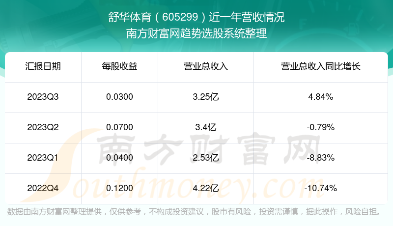 舒华体育股票近一年营收情况如下表: