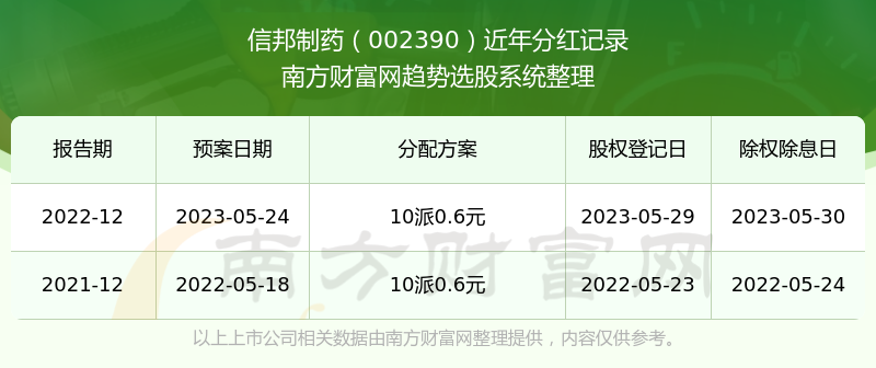 信邦制药最新一次公布的分红方案:10派0.6元。