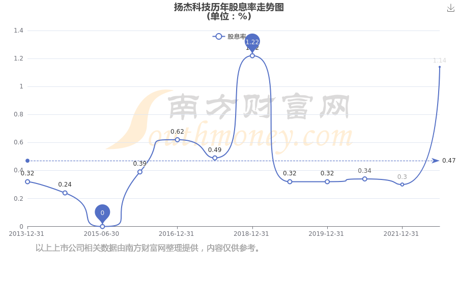 近年扬杰科技年度股息率走势如下图:
