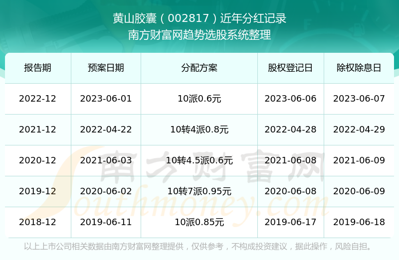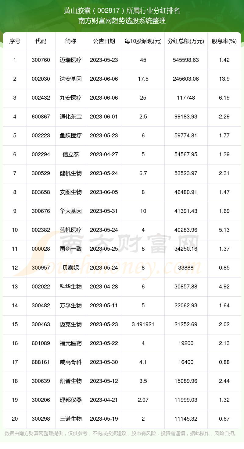 二、黄山胶囊002817行业分红排名