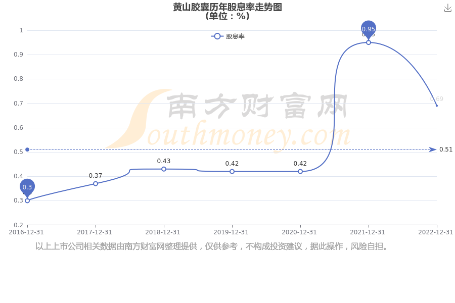 近年黄山胶囊年度股息率走势如下图: