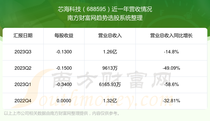 财报显示,2023年第三季度芯海科技营收1.26亿元,同比增长-14.8%,净利润-1799.57万元,同比增长-40.27%。