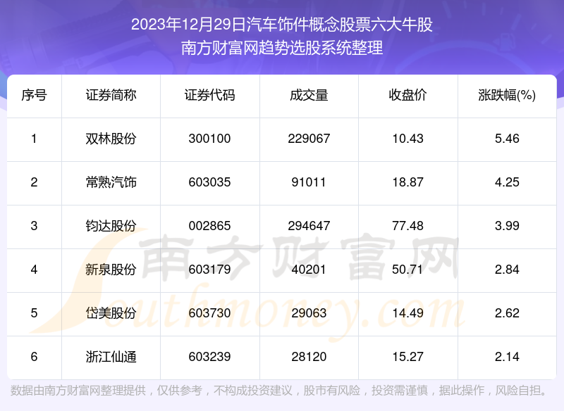 以上就是网络对股指配资 数据解盘|2023年12月29日汽车饰件概念股票六大牛股的解读(https://www.anancha.cn/news-pzhq/52986.html)希望可以帮助您。