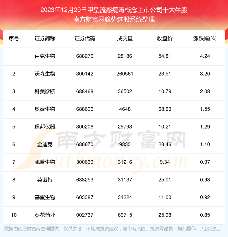 以上就是网络对在线配资 【盘后整理】甲型流感病毒概念上市公司2023年12月29日十大牛股名单的解读(https://www.anancha.cn/news-pzhq/53046.html)希望可以帮助您。