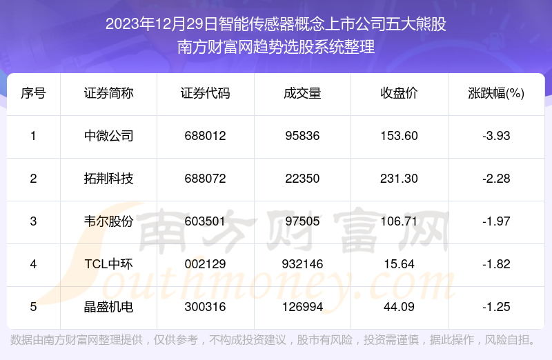 以上就是网络对炒股配资公司 2023年12月29日盘后数据:智能传感器概念上市公司五大熊股的解读(https://www.anancha.cn/news-pzhq/53054.html)希望可以帮助您。