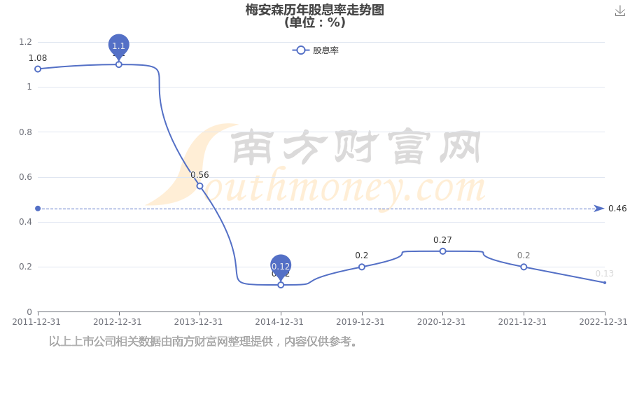 近年梅安森年度股息率走势如下图: