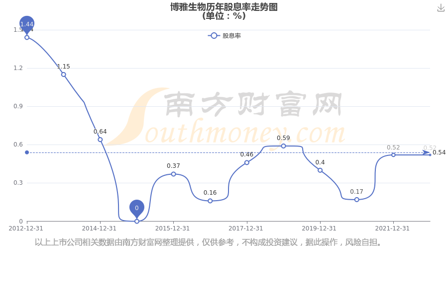 近年博雅生物年度股息率走势如下图: