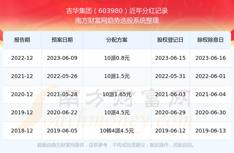 吉华集团最新一次公布的分红方案:10派0.8元。