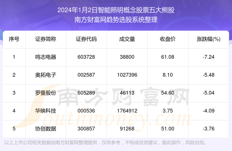 以上就是网络对配资炒股 2024年1月2日板块复盘:智能照明概念股票五大熊股的解读(https://www.anancha.cn/news-pzhq/53437.html)希望可以帮助您。