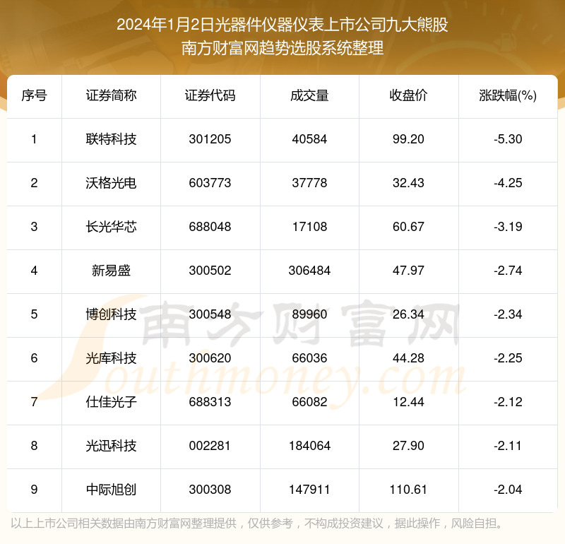 以上就是网络对最好股票配资公司 数据解盘|2024年1月2日光器件仪器仪表上市公司九大熊股一览的解读(https://www.anancha.cn/news-pzhq/53473.html)希望可以帮助您。