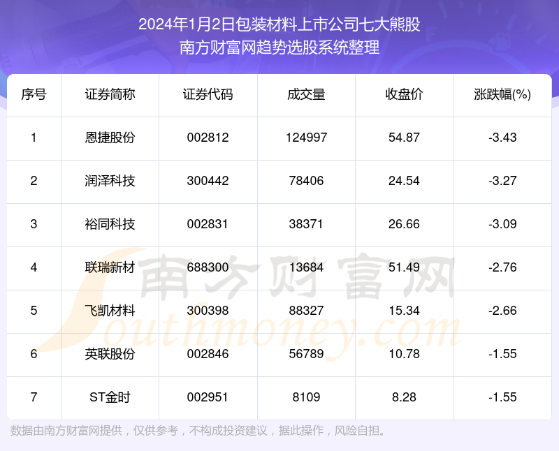 以上就是网络对配资炒股网站 2024年1月2日板块复盘:包装材料上市公司七大熊股名单的解读(https://www.anancha.cn/news-pzhq/53502.html)希望可以帮助您。
