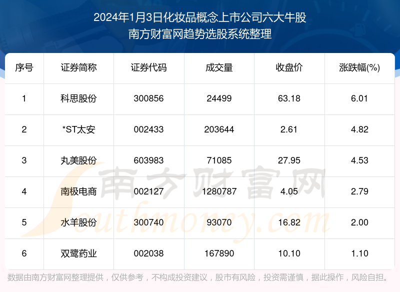 以上就是网络对湖南期货配资 【盘后整理】化妆品概念概念上市公司2024年1月3日六大牛股名单的解读(https://www.anancha.cn/news-pzhq/53535.html)希望可以帮助您。
