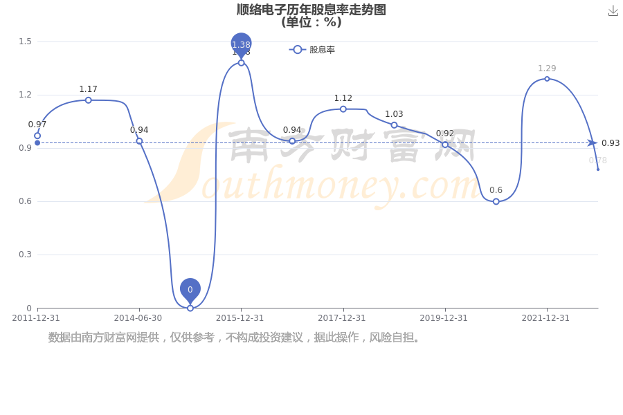 近年顺络电子年度股息率走势如下图: