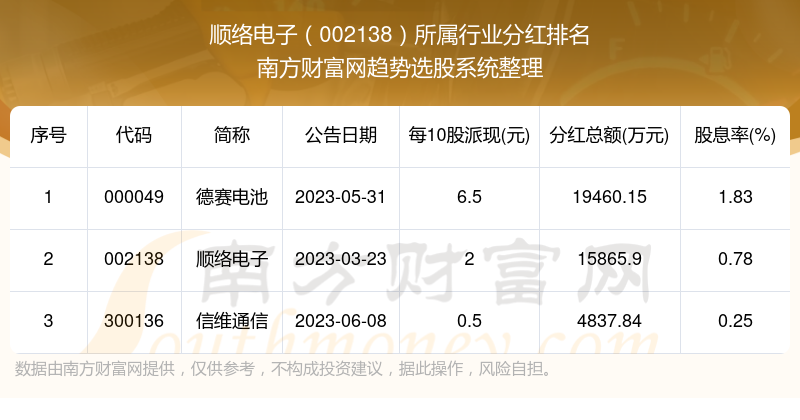 二、顺络电子002138行业分红排名