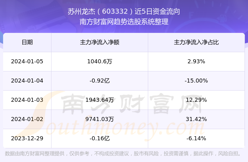 二、苏州龙杰(603332)近期盘面、资金面情况