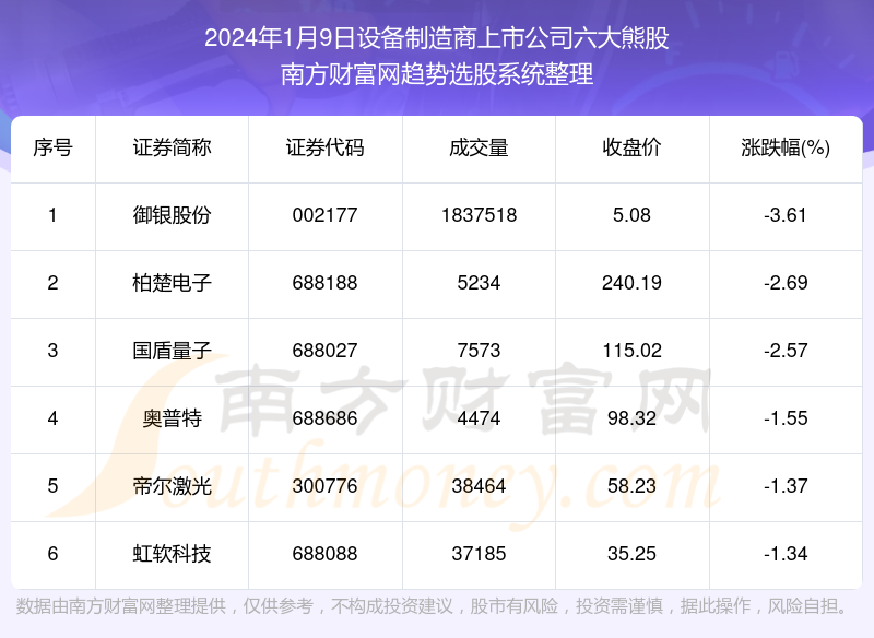 以上就是网络对股票配资来大圣配资 板块复盘|2024年1月9日设备制造商上市公司六大熊股的解读(https://www.anancha.cn/news-pzhq/53803.html)希望可以帮助您。