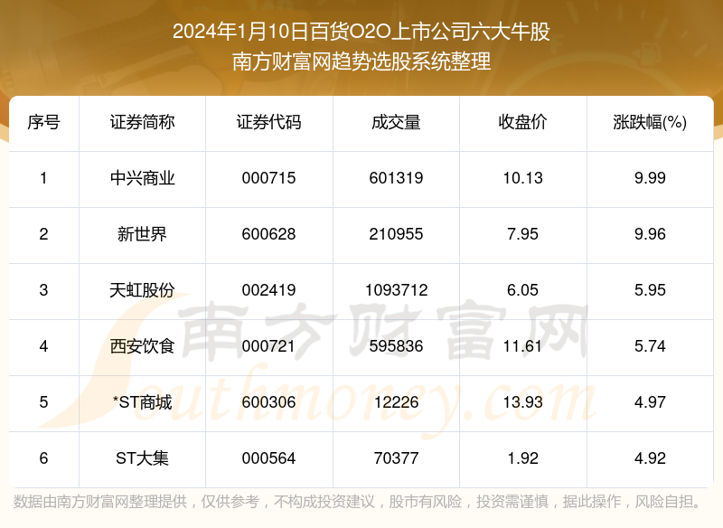 以上就是网络对炒股配资 板块复盘|2024年1月10日百货O2O上市公司六大牛股一览的解读(https://www.anancha.cn/news-pzhq/53831.html)希望可以帮助您。