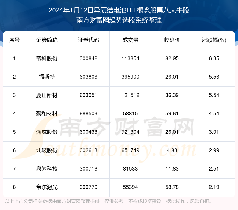 以上就是网络对牛弘配资 2024年1月12日板块复盘:异质结电池HIT概念股票八大牛股的解读(https://www.anancha.cn/news-pzhq/53963.html)希望可以帮助您。