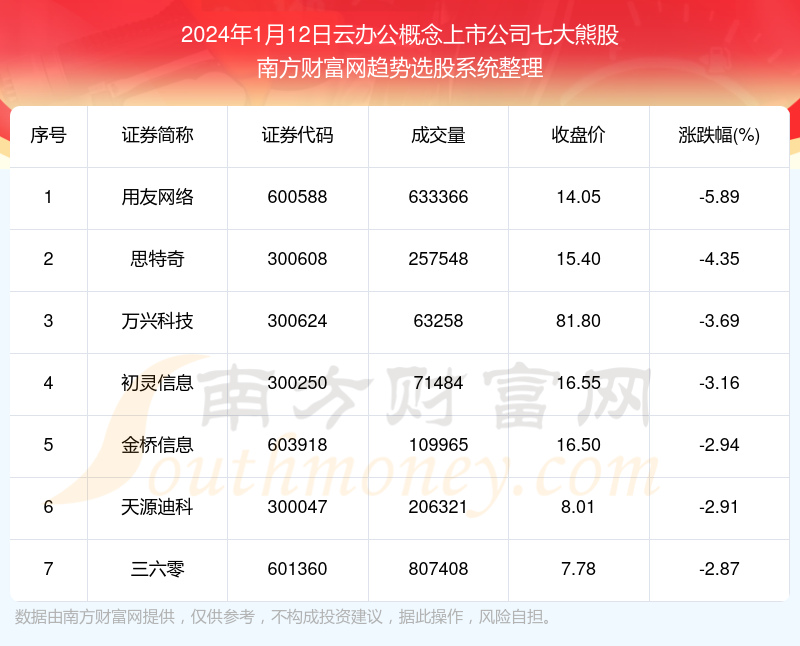 以上就是网络对配资是什么意思 数据解盘|2024年1月12日云办公概念上市公司七大熊股的解读(https://www.anancha.cn/news-pzhq/53969.html)希望可以帮助您。