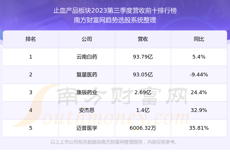 按照南方财富网趋势选股系统统计,该股所属板块为止血产品板块,该板块共有5只股票,昊海生科2023第三季度营收在该板块中排名为第5名,该板块2023第三季度营收排名前十的股票如下表: