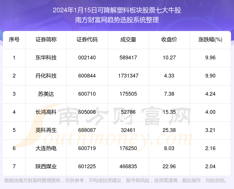 以上就是网络对配资炒股网站 数据解盘|2024年1月15日可降解塑料板块股票七大牛股名单的解读(https://www.anancha.cn/news-pzhq/54109.html)希望可以帮助您。