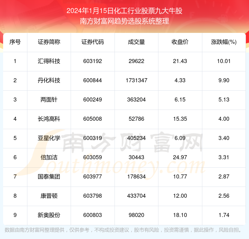 以上就是网络对天津股票配资 数据复盘:化工行业股票九大牛股(2024年1月15日)的解读(https://www.anancha.cn/news-pzhq/54121.html)希望可以帮助您。