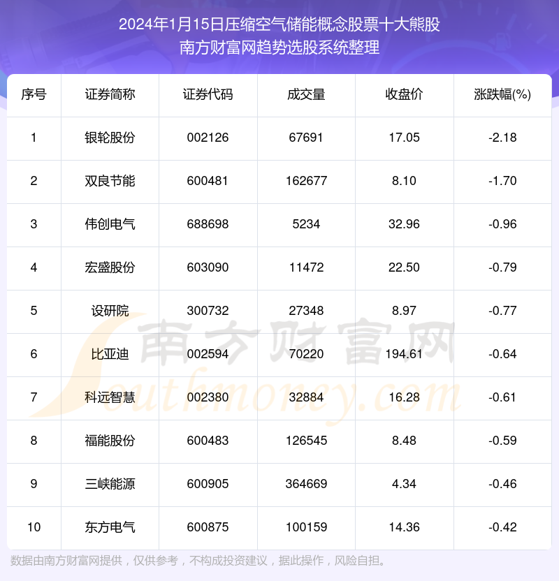 以上就是网络对上海配资平台 【数据复盘】压缩空气储能概念股票2024年1月15日十大熊股的解读(https://www.anancha.cn/news-pzhq/54137.html)希望可以帮助您。