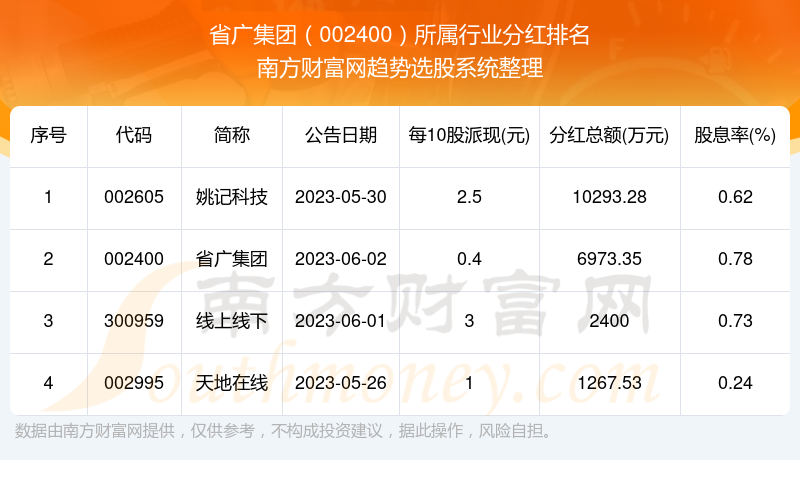 以上就是网络对至尊配资 省广集团每年分红多少_002400所属行业股票分红排名情况的解读(https://www.anancha.cn/news-pzhq/54244.html)希望可以帮助您。