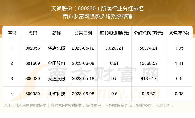 以上就是网络对配资之家 天通股份历年分红多少_600330所属行业分红排名一览表的解读(https://www.anancha.cn/news-pzhq/54268.html)希望可以帮助您。