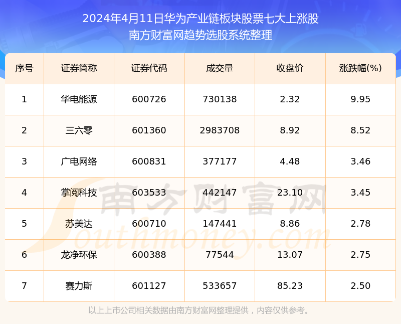 以上就是网络对广州期货配资 板块复盘|2024年4月11日华为产业链板块股票七大上涨股的解读(https://www.anancha.cn/news-pzhq/54416.html)希望可以帮助您。