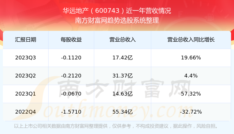 华远地产股票近一年营收情况如下表: