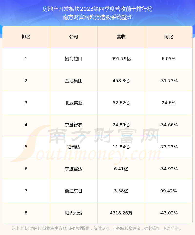 按照南方财富网趋势选股系统统计,该股所属板块为房地产开发板块,该板块共有8只股票,华远地产2023第四季度营收在该板块中排名为第8名,该板块2023第四季度营收排名前十的股票如下表: