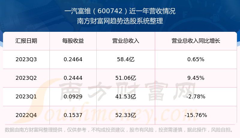 按照南方财富网趋势选股系统统计,该股所属板块为汽车保险杠板块,该板块共有1只股票,一汽富维2023第四季度营收在该板块中排名为第1名,该板块2023第四季度营收排名前十的股票如下表: