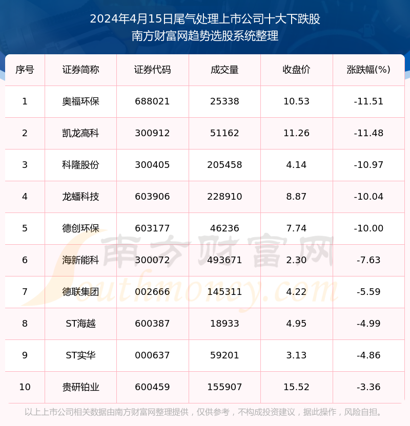 以上就是网络对正规配资公司 2024年4月15日板块复盘:尾气处理上市公司十大熊股的解读(https://www.anancha.cn/news-pzhq/54660.html)希望可以帮助您。