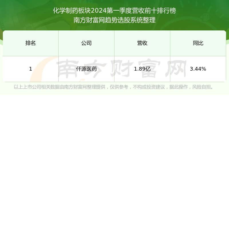 按照南方财富网趋势选股系统统计,该股所属板块为化学制药板块,该板块共有1只股票,纳微科技2024第一季度营收在该板块中排名为第1名,该板块2024第一季度营收排名前十的股票如下表: