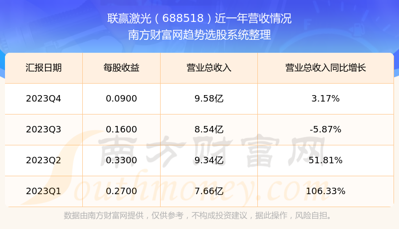 联赢激光股票近一年营收情况如下表: