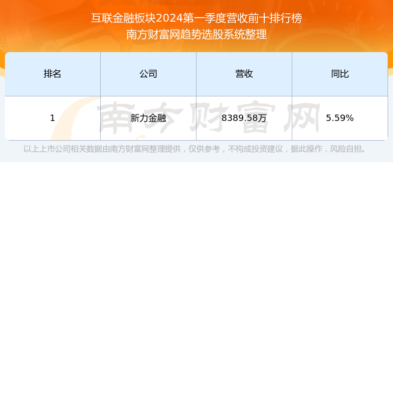 按照南方财富网趋势选股系统统计,该股所属板块为互联金融板块,该板块共有1只股票,中国银行2024第一季度营收在该板块中排名为第1名,该板块2024第一季度营收排名前十的股票如下表: