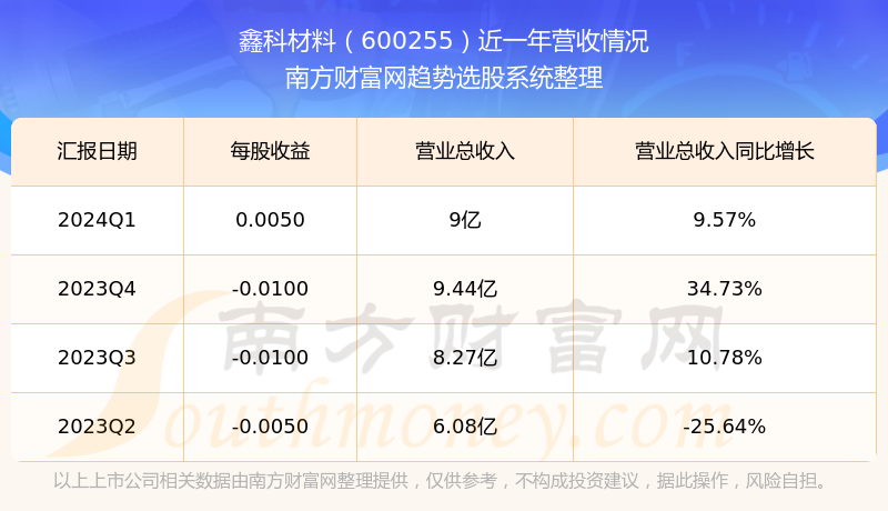 财报显示,2024年第一季度鑫科材料营收9亿元,同比增长9.57%,净利润847.27万元,同比增长197.84%。